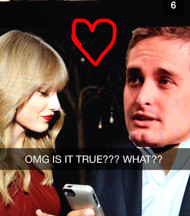 This could explain why Spiegel has been so preoccupied lately—who can care about security breaches when you've made lip-contact with the meanest hot girl in 7th grade? We've always heard Spiegel wants to slip his ephemerality boner to Kate Upton, his girlfriend's bestie—and speaking of that girlfriend, what will Lucinda Aragon think of all this? Ideally, the kiss between Swift and the baddest boy in Silicon Beach really happened, resulting in an event horizon of horror and shitty-personality-rage that sucks everyone involved into a vortex.